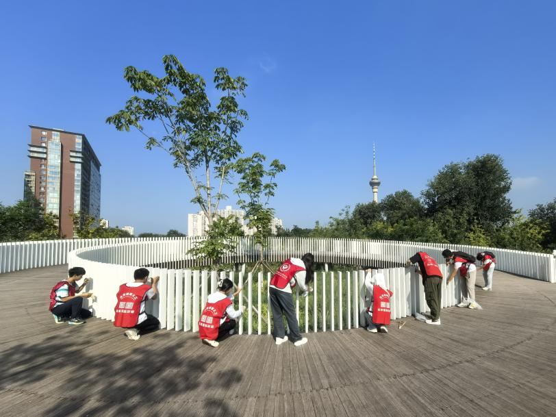 近日,微众汇石景山志愿服务队队员相聚在海淀区儿童科学公园,共同参与环保公益活动。活动中,队员们手持环保工具,顶着烈日,沿公园小路细心清理绿化带中的垃圾,将公园座椅、护栏及宣传牌等设施擦拭干净,美化了公园环境,也增强了队员的环保意识和游人参与公益活动的热情。