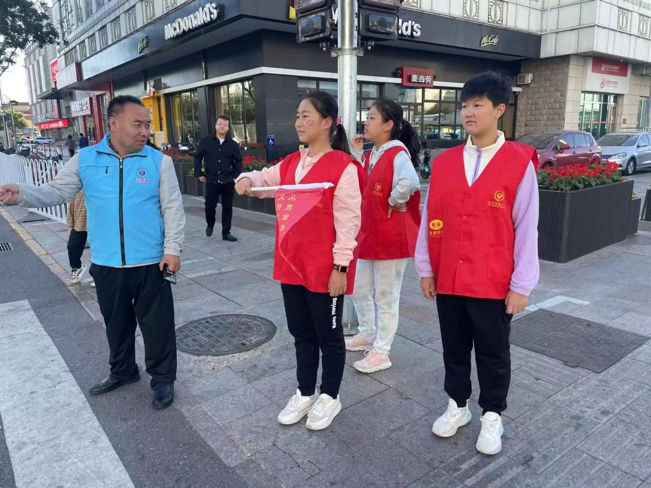 10月1日,善行华夏慈善义工服务队组织义工队员20人,来到怀柔区万达广场,在交通信号灯附近,劝导行人遵守信号灯的指引、安全有序通过交通道口活动。副队长张玉琴提醒注意事项后,大家手握指挥旗、笔直地站在路口马路牙上,温和地提醒大家适时通过路口。参加此次活动的队员有的来自社区,有的是小学生,有的是大学生。