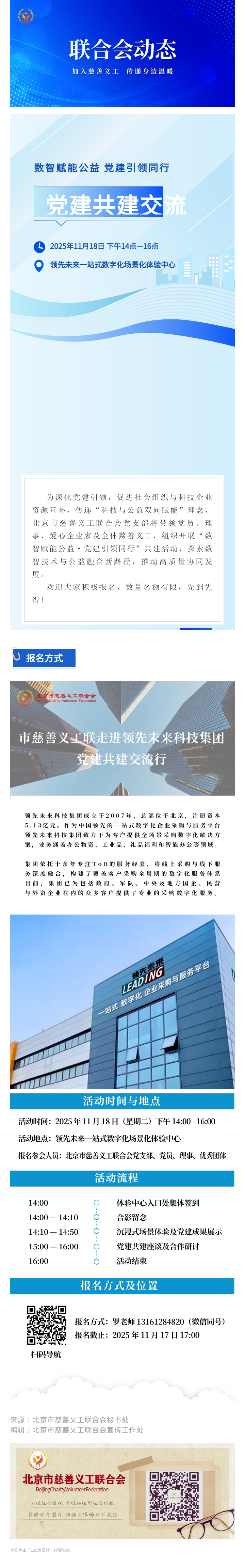【活动预告】“数智赋能公益 ·党建引领同行 ”北京市慈善义工联合会党支部党建共建交流行